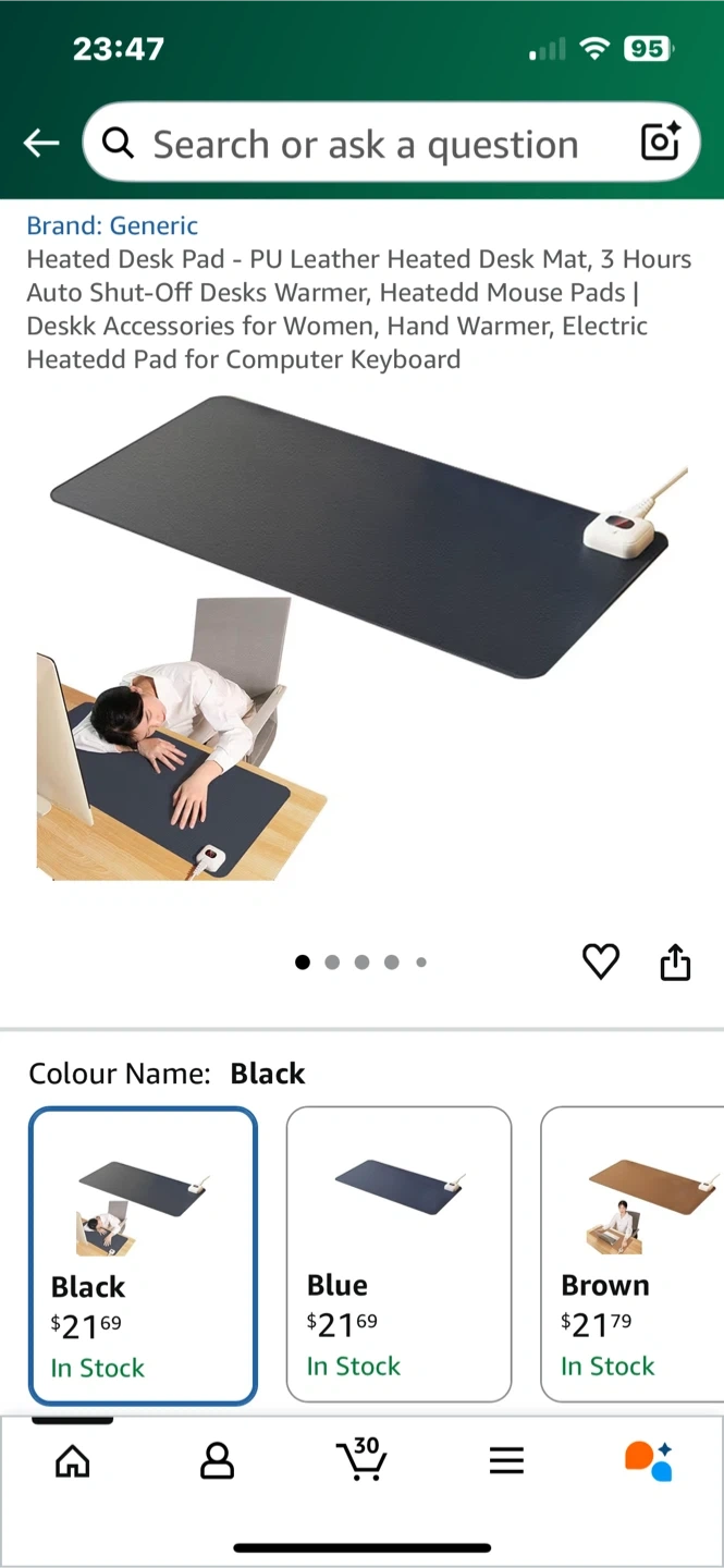 This heated desk pad is perfect for keeping your hands warm while you work! It's made of PU leather and features 3-hour auto shut-off for safety. It measures 26cm x 52cm.