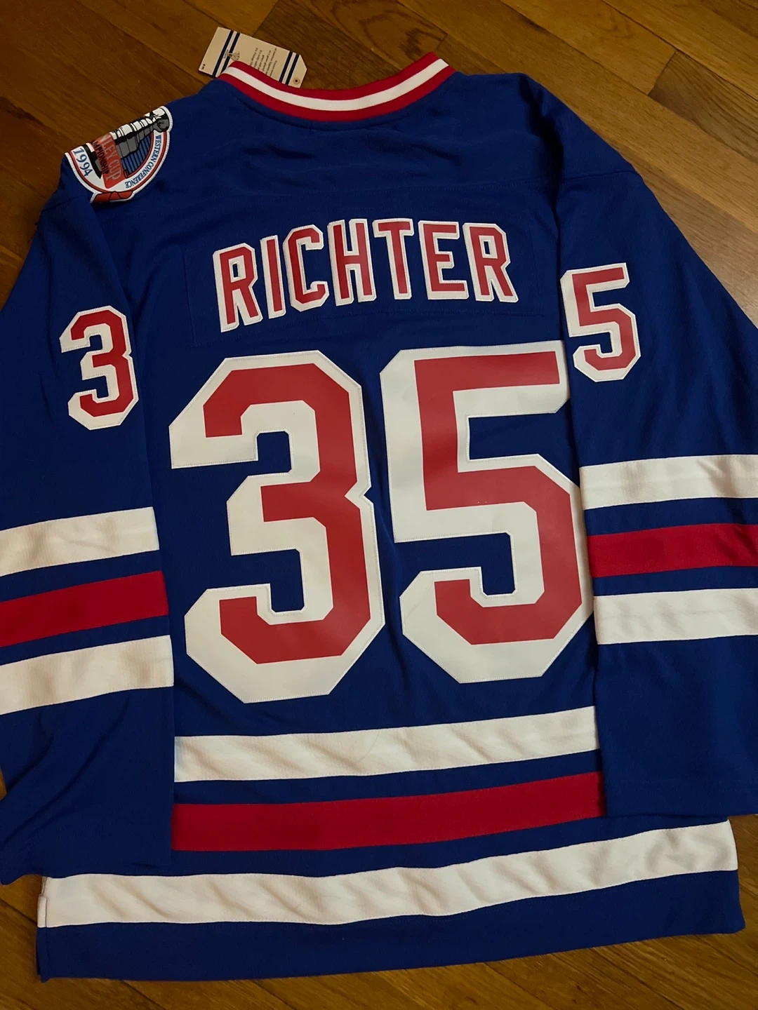 Here's a Vintage Hockey New York Rangers Mark Richter #35 jersey! It's a size L and in great condition with tags. The jersey features the 1994 Stanley Cup patch. Originally priced at $200