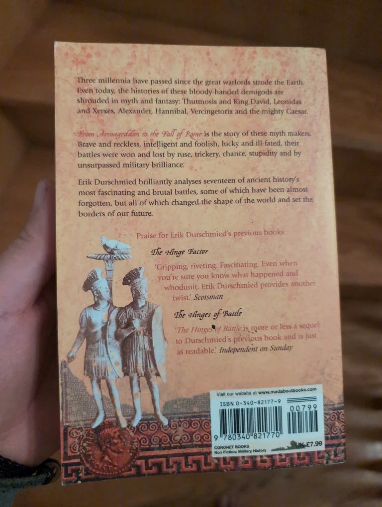 Selling the book "From Armageddon to the Fall of Rome" by Erik Durschmied. It explores how the ancient warlords changed the world. A fascinating read for history buffs!