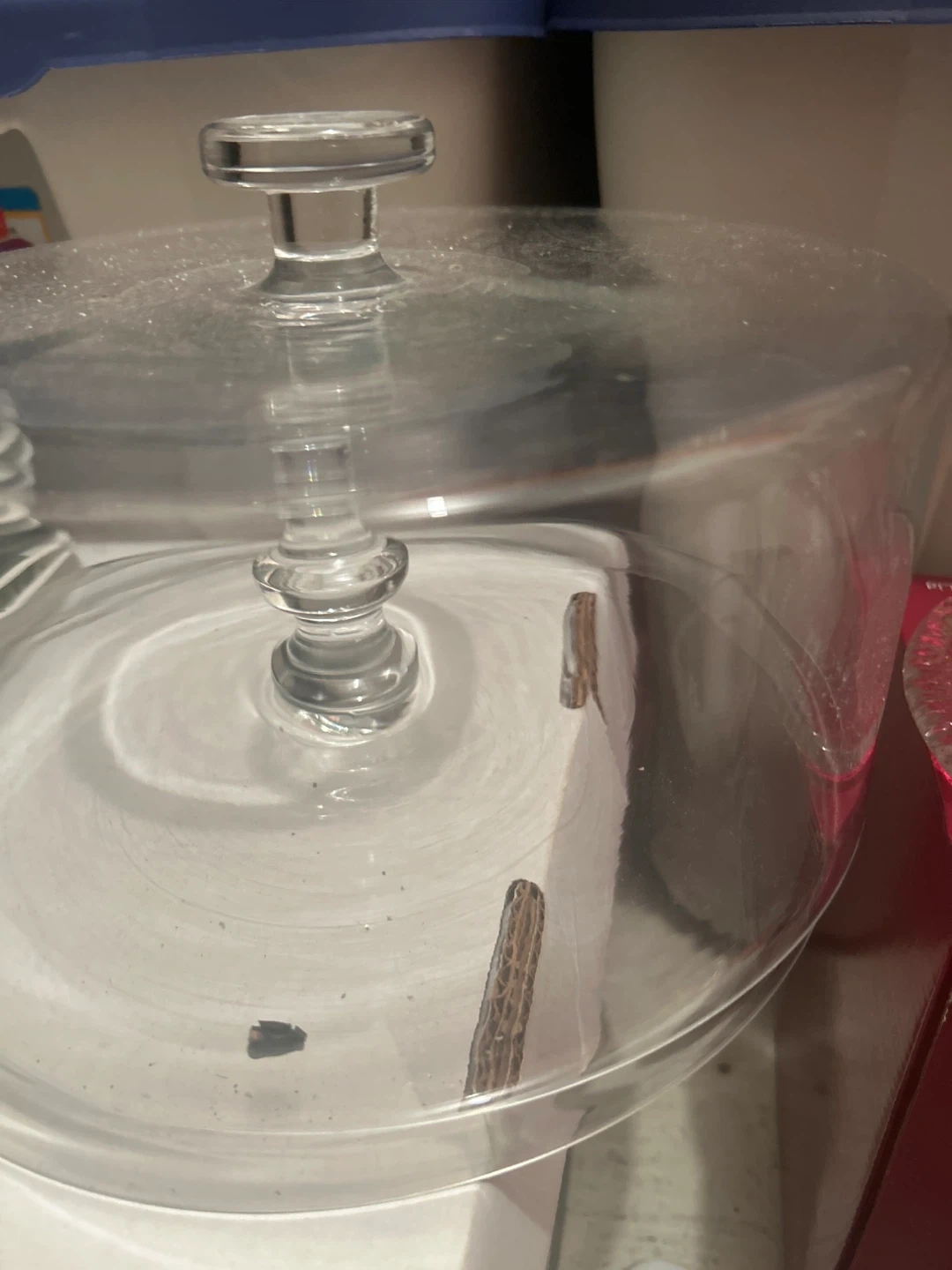 Selling a clear glass cake stand with a dome lid. It's perfect for displaying your baked goods or desserts at home or for parties. It's in great condition and ready for a new home!