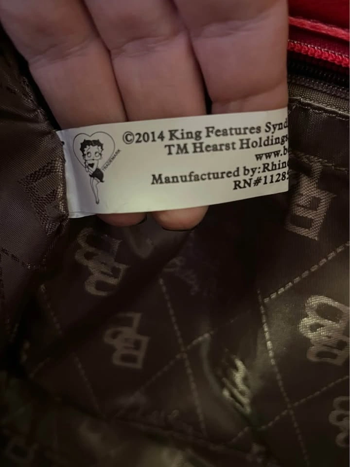 Authentic Betty Boop purse. It’s large and spacious and has extra zipped pockets inside. New, never used, but has a few scuff marks from being hung in the closet against other purses. Pickup in Courtice.