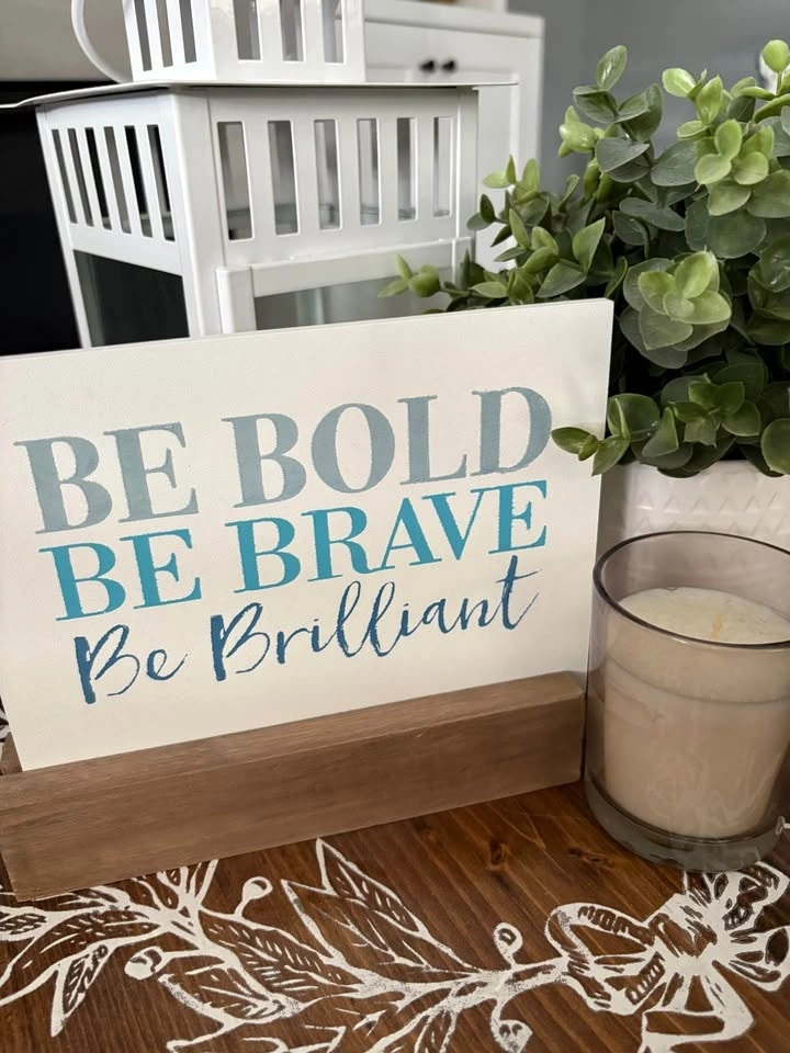 They are made on a chalkboard type surface with a beautiful wood base. They are 5x 7