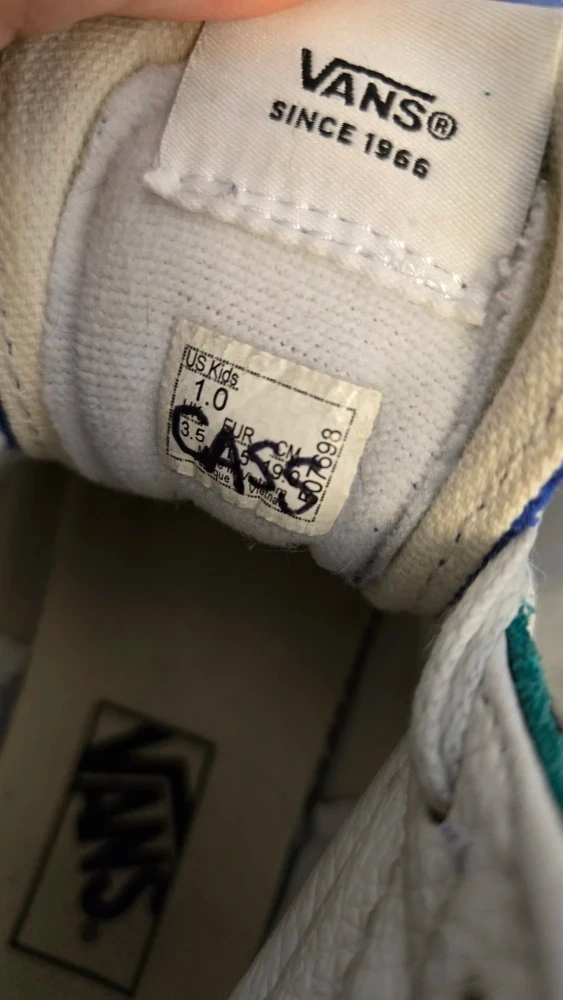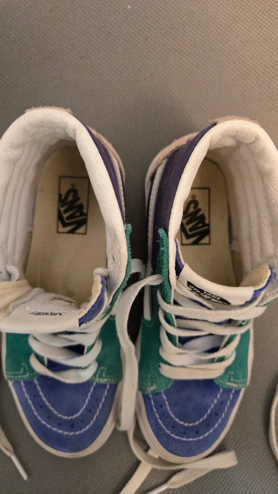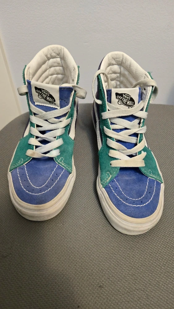 Selling a pair of Vans high-top sneakers for kids. They are a size US Kids 1.0 and feature a cool colour combination of blue, green, and purple. These are in good condition and ready for a new home! Located in Midnapore.