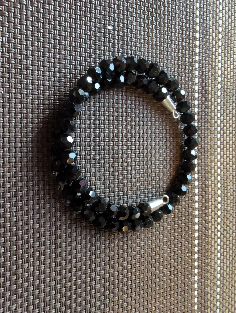 The bracelet features faceted beads that catch the light nicely, and it's a comfortable fit.