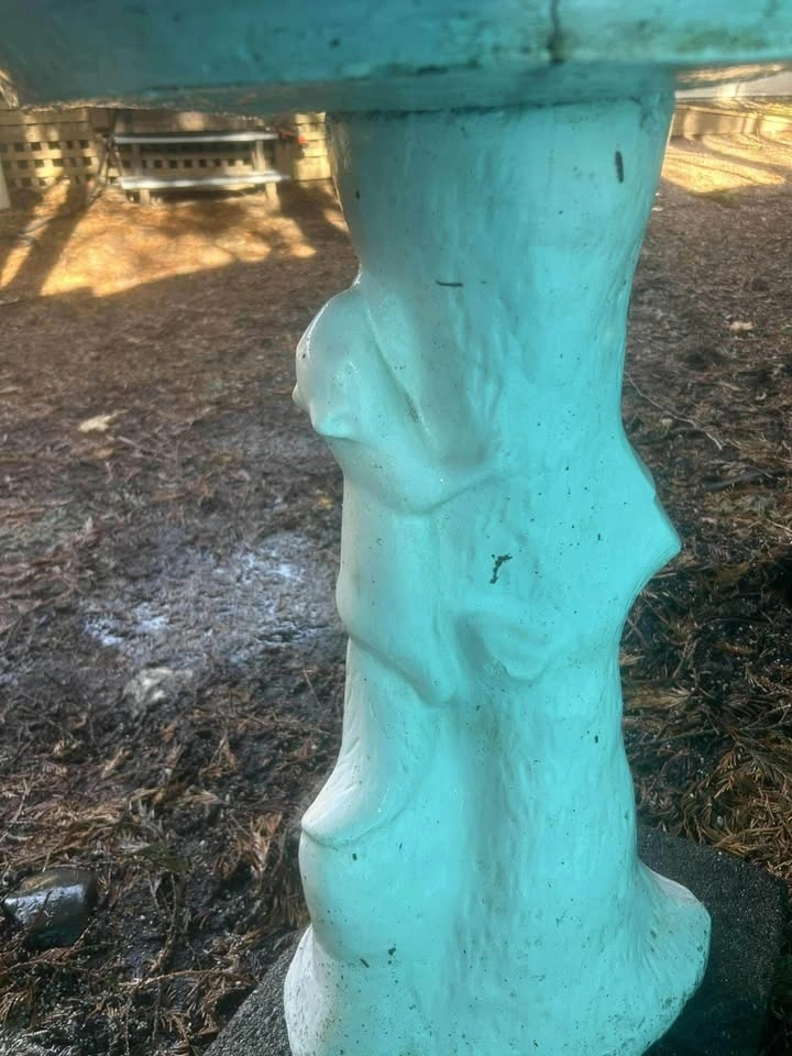 Beautiful and sturdy bird bath featuring charming squirrel and tree trunk details.
