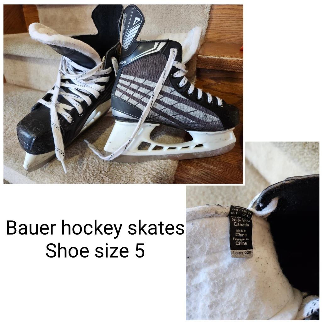 Selling a pair of Bauer hockey skates in US size 5. They are in good used condition. May need to be sharpened.