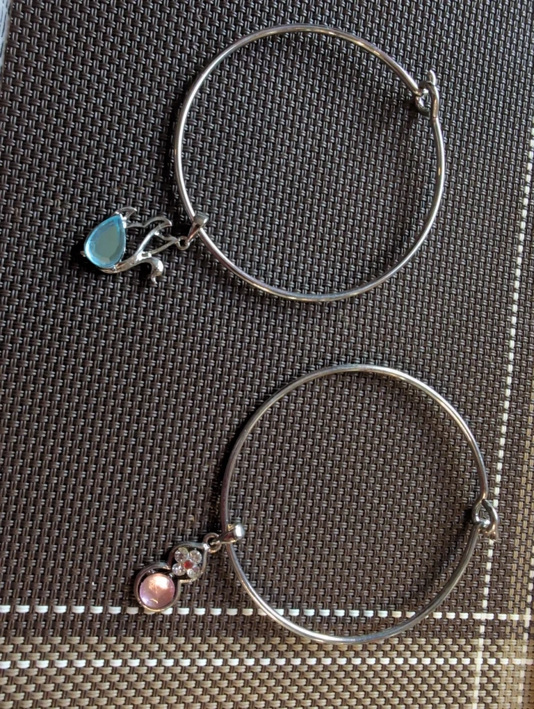 Selling part of my jewelry collection, two silver bangle bracelets.