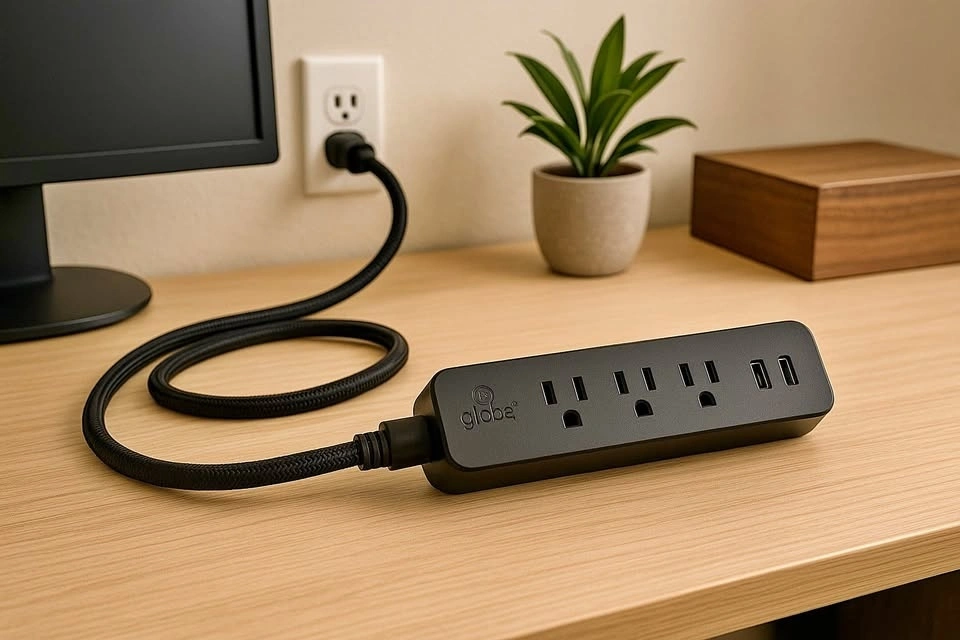Reliable 3-outlet power bar with two built-in USB ports. Perfect for desks, TV units, gaming setups, or anywhere you need extra plugs without the spaghetti mess.