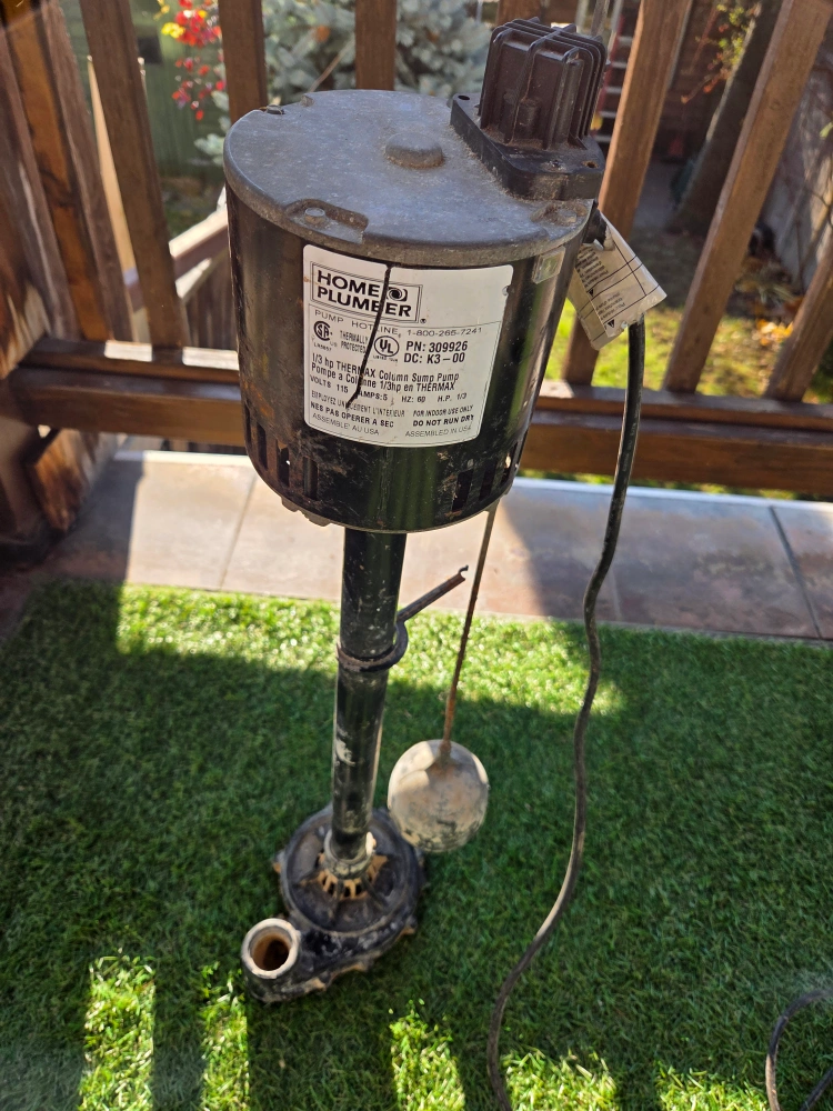 Selling a used Home Plumber Column Sump Pump. It's a 1/3 hp Thermally Protected motor. Please refer to the images for details! works well, happy to provide a bucket of water and plug for a test before taking it home