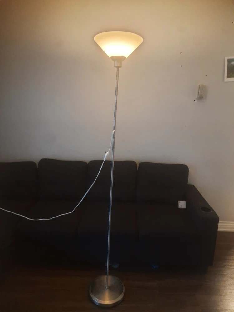 Selling a floor lamp in great condition! It has a sleek silver finish that would look great in any room. It's perfect for adding some extra light to your living space or bedroom..like new..location downtown..
