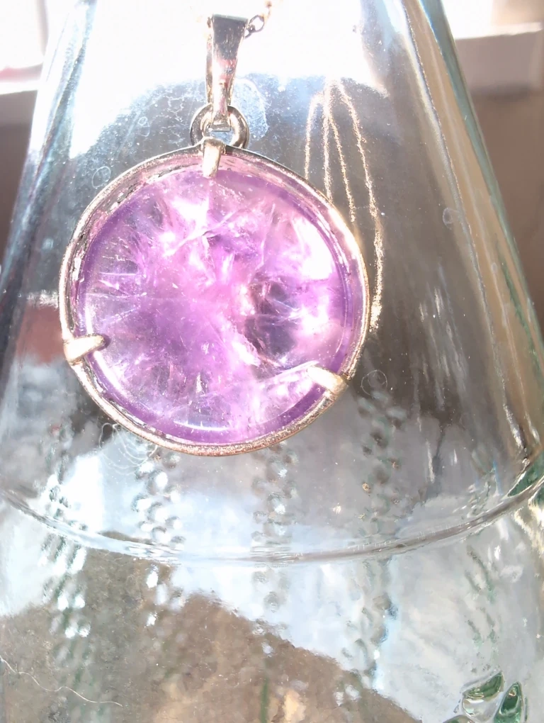 Beautiful amethyst pendant necklace, perfect for adding a touch of elegance to any outfit! The pendant features a lovely purple amethyst stone set in a silver-tone metal. The chain is delicate and complements the pendant nicely. It's in great condition and ready to be worn and enjoyed!
