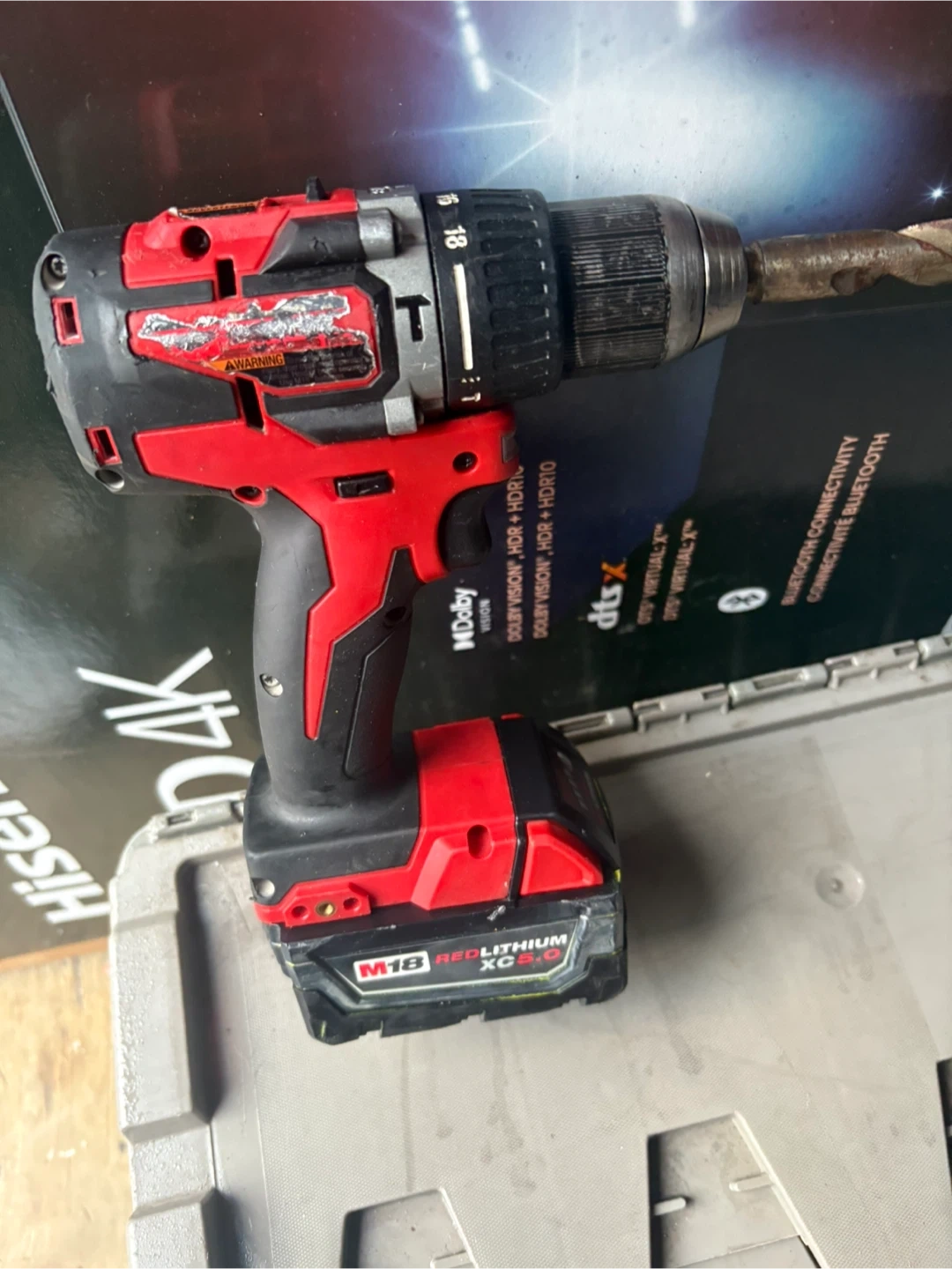 Selling a Milwaukee M18 cordless drill. It's in good working condition and ready for your next project. Features a brushless motor for efficient power and long-lasting performance