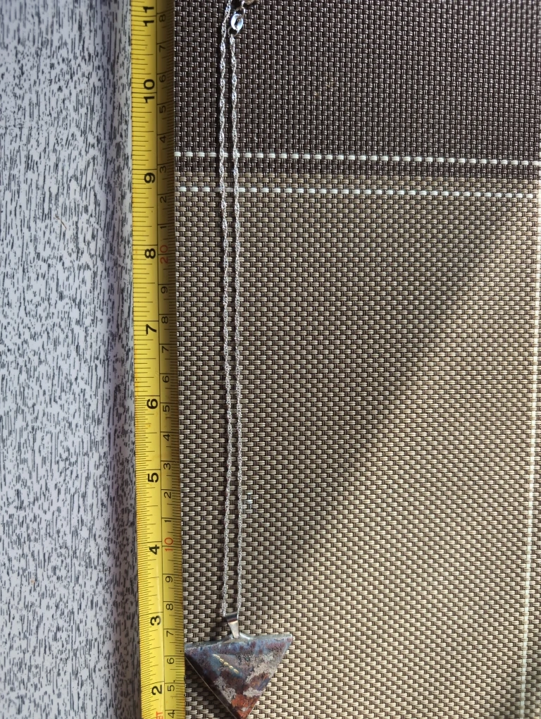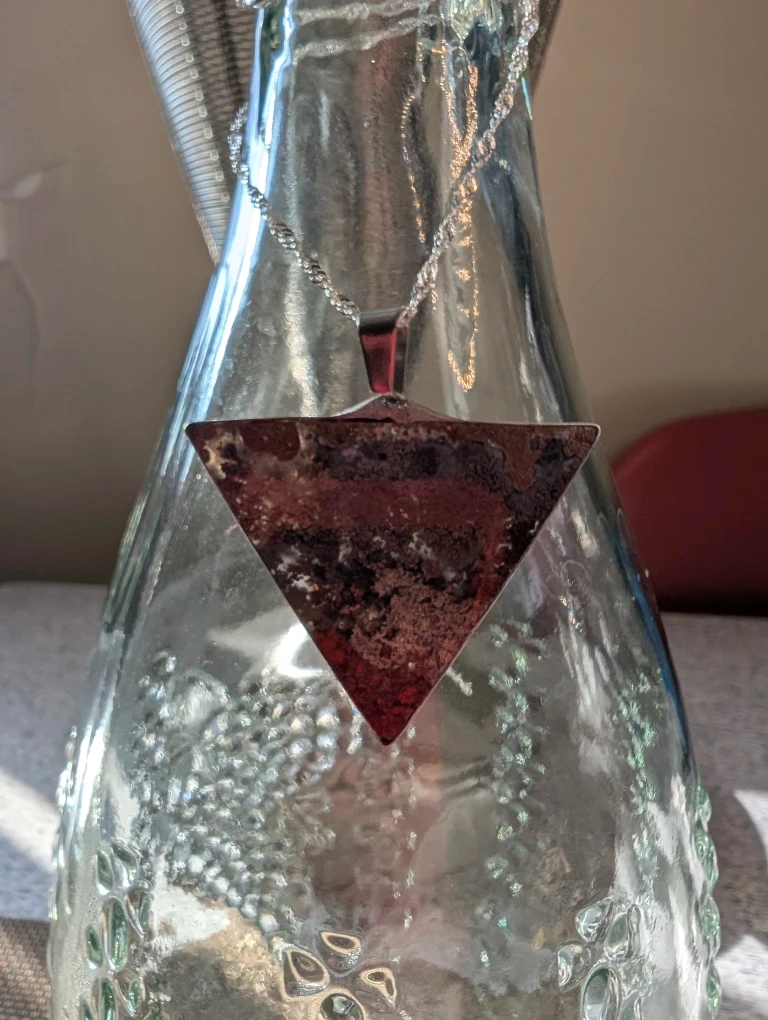 Check out this previously loved unique bevelled triangle pendant necklace!