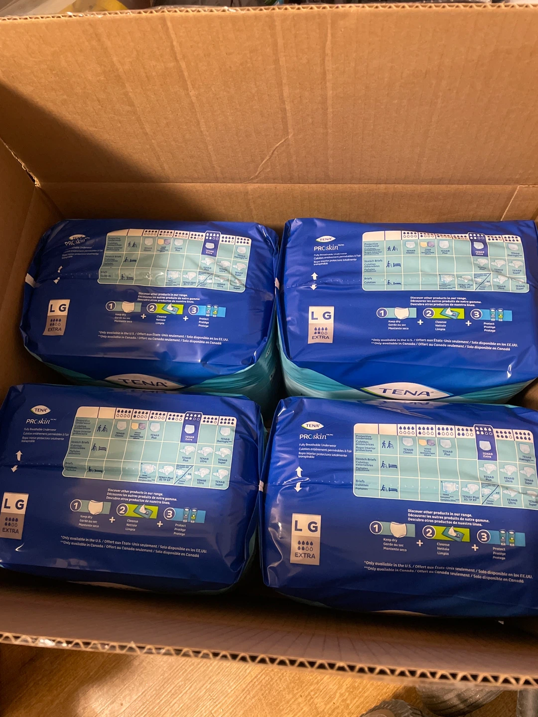 Selling 4 packs of TENA ProSkin fully breathable underwear in size large. These are designed to keep you dry, cleanse, and protect. Discover other products in the TENA range for your personal care needs!