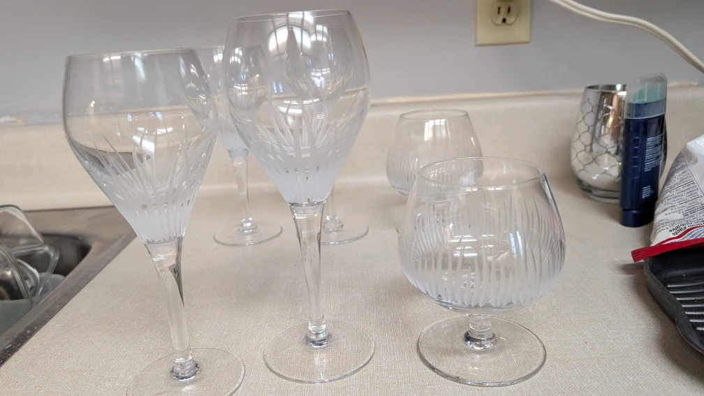 Set of 6 Etched Glass Wine Glasses
