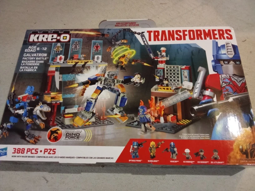 Selling a Kre-O Transformers Galvatron Factory Battle set! This set is for ages 6-12 and includes 388 pieces to build your own Transformers factory battle scene. It works with major brands!