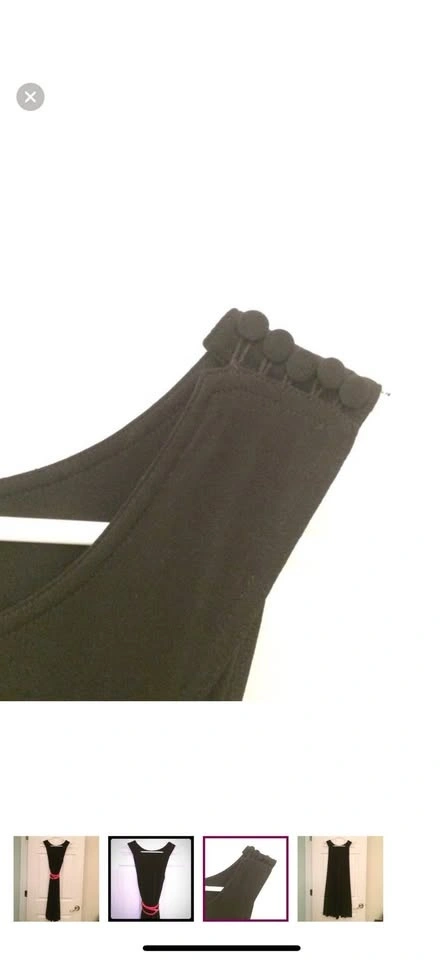 Sexy little black dress. From shoulder to hem is 37". Scoop neck that comes together with buttons on the shoulder. Excellent condition! Thin, silky material feel. Lays loose. Pick up 45th between 8 and 9