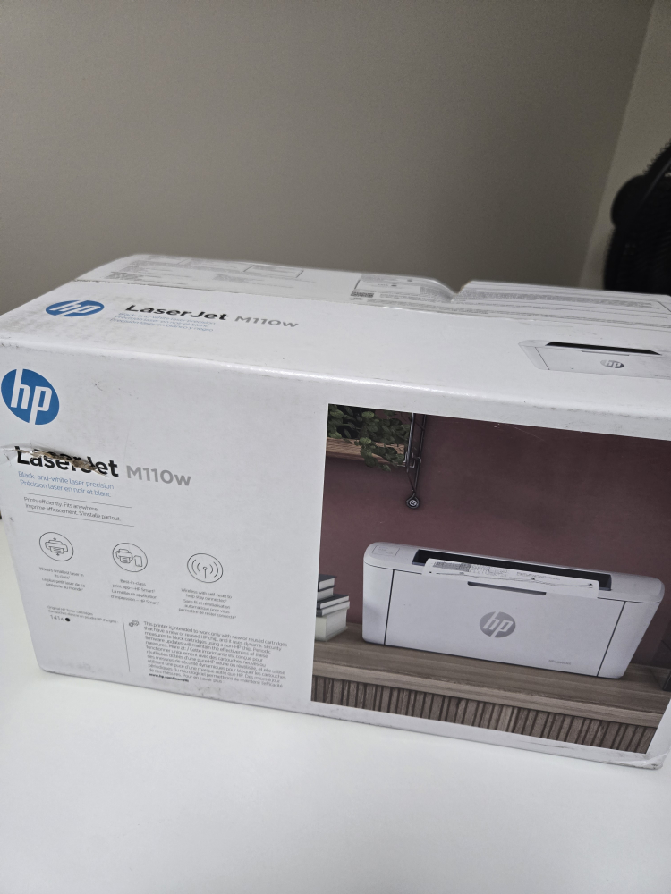 Selling a brand new HP LaserJet M110w printer still in its original box! Never been used, so it's in perfect condition. Great for home or small office use. Get crisp, clear black-and-white prints with this reliable printer!