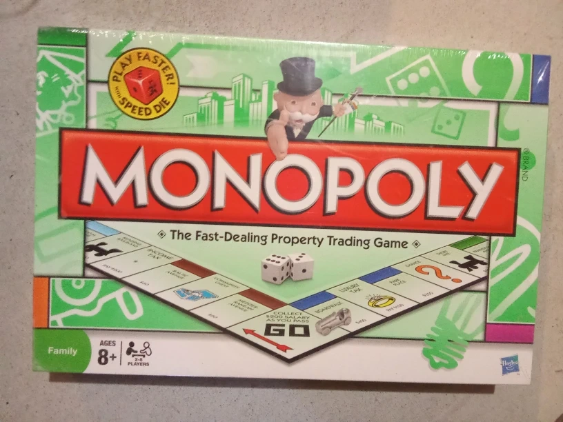 Selling a Monopoly board game! It's the classic fast-dealing property trading game for ages 8 and up. Great for family game nights.