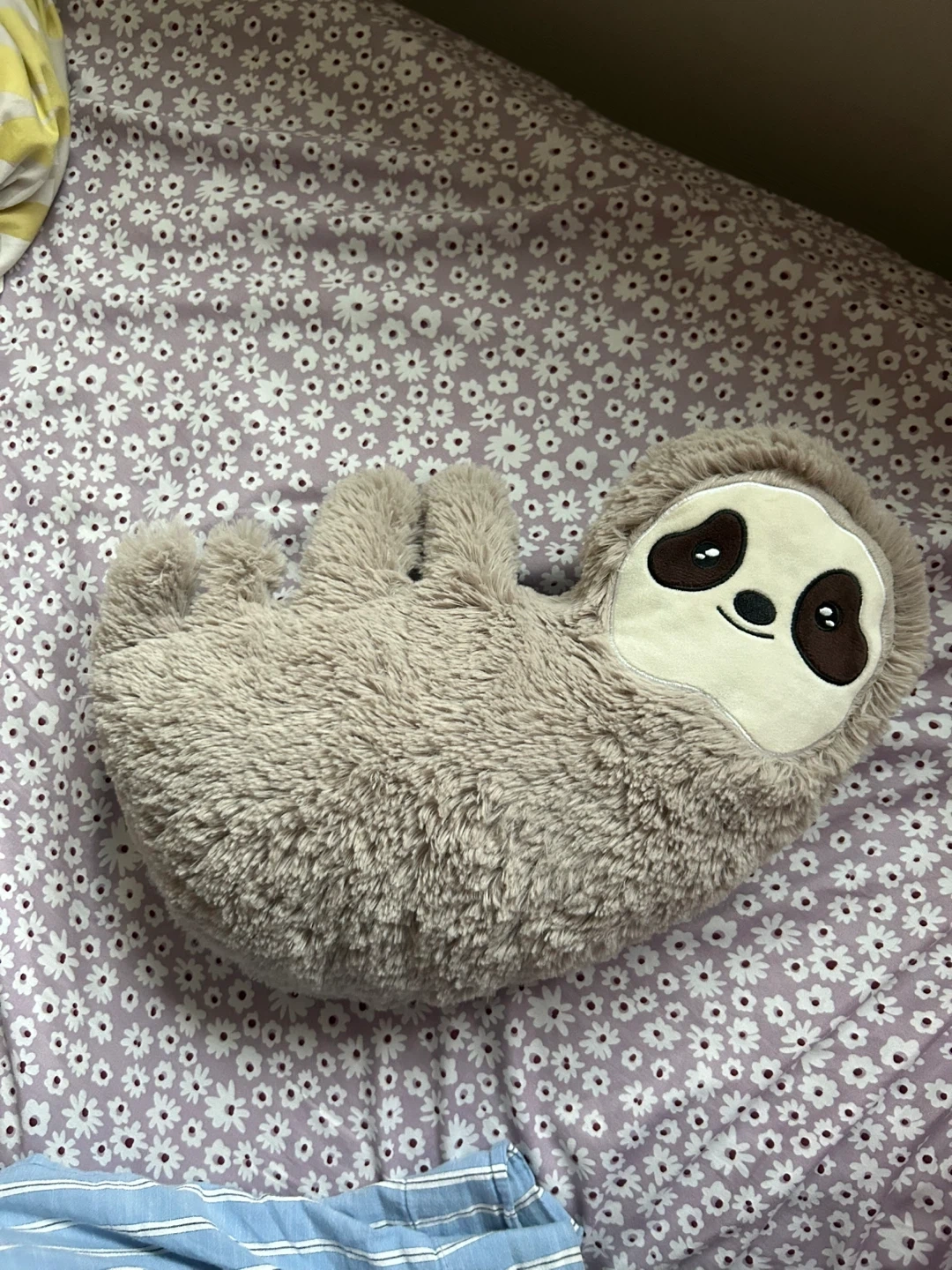 Selling a cute sloth stuffed animal pillow! It's in great condition and super soft. Perfect for cuddling or as a decorative pillow for a kid's room or any room really