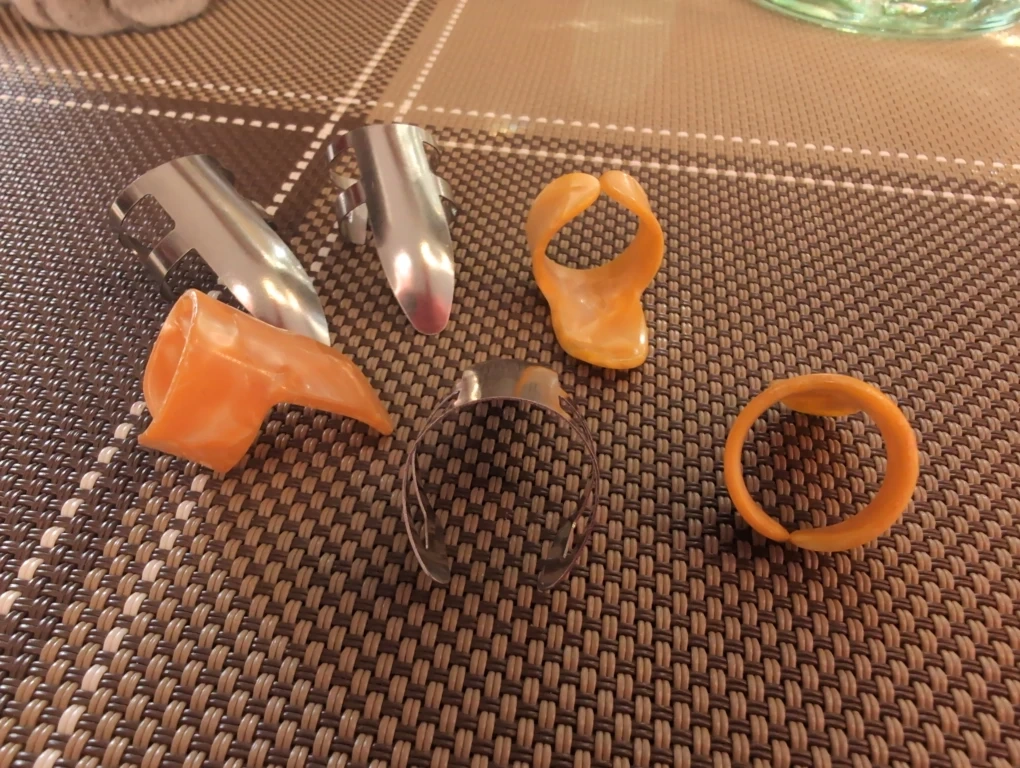 Free guitar finger picks! Includes both thumb and finger style picks, perfect for playing various guitar styles. The set includes a mix of metal and plastic picks.