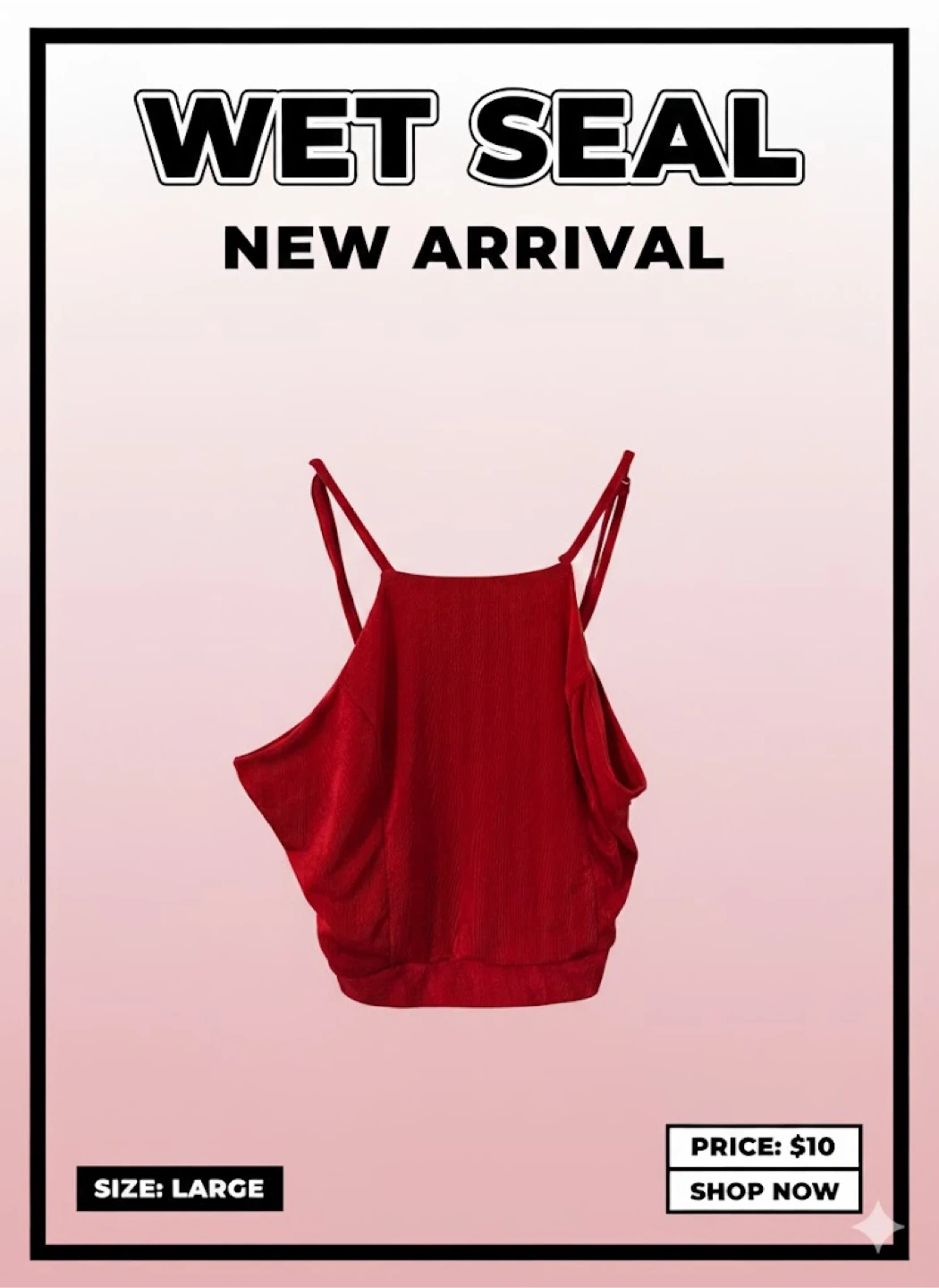 Buy & SellNew Wet Seal Red Top - Size LargeNew Wet Seal Red Top - Size Large$10Selling a brand new Wet Seal red top in size large! Originally priced at $10ConditionLike newSizeWet sealBrandWet Seal0 chats·1 favorites·2 viewsSELLERTwinkle gillBrampton Gateway Terminal100 reviewsWHERE TO MEETBrampton Gateway Terminal