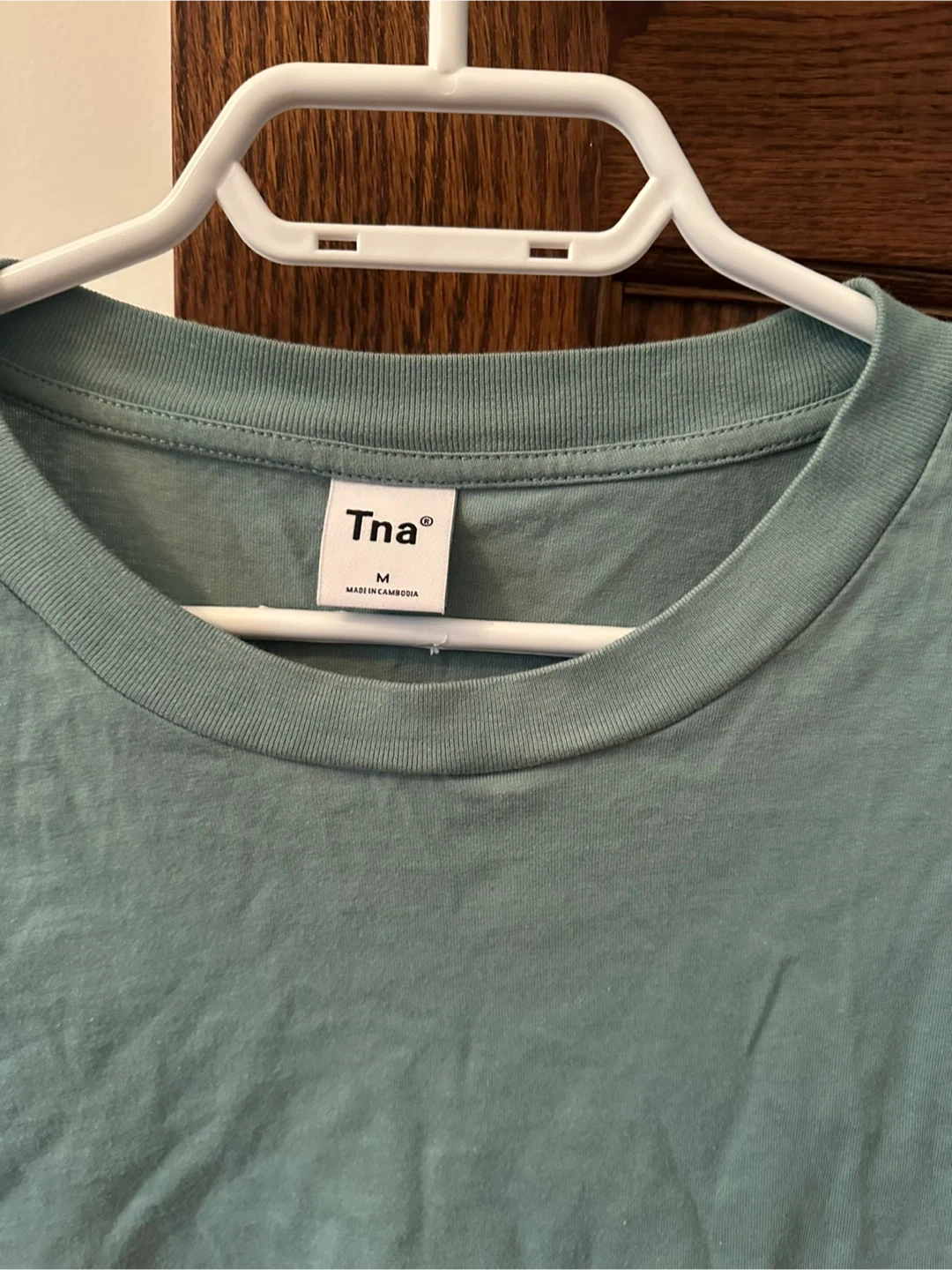 Selling a Tna crop top in size medium. It's a nice light green colour and in great condition. Perfect for layering or wearing on its own!