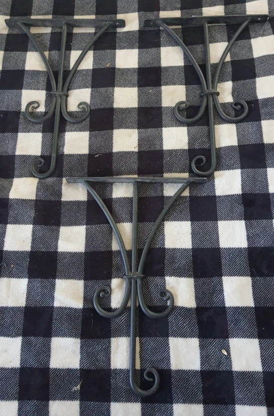 Selling a set of three shelf brackets from Pacific Rim! They're about 14 inches tall and 11 inches wide, perfect for adding some stylish support to your shelves metal.