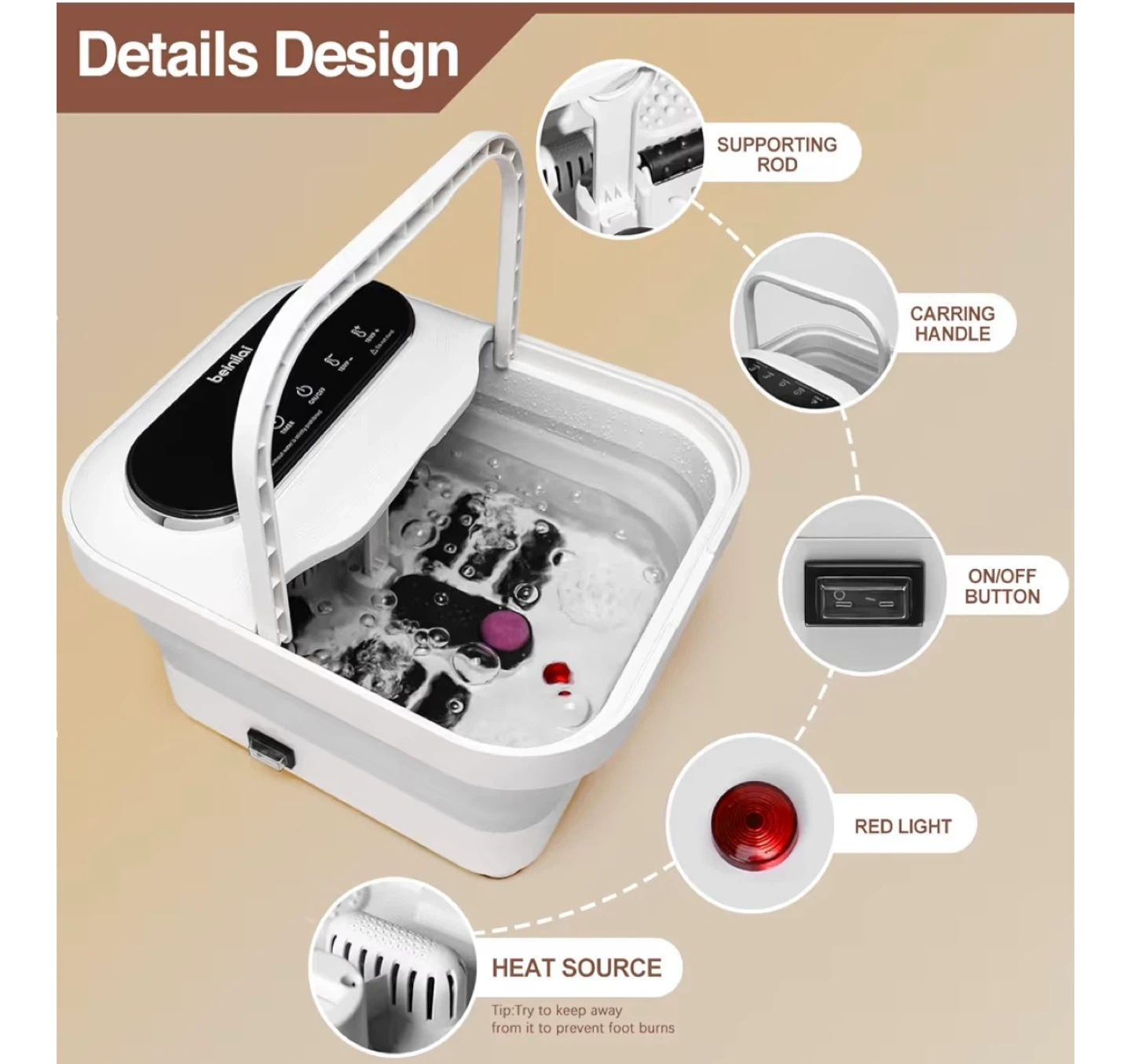 •It features a carrying handle, supporting rod, on/off button, and a red light.