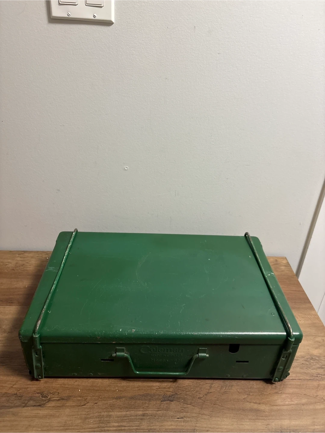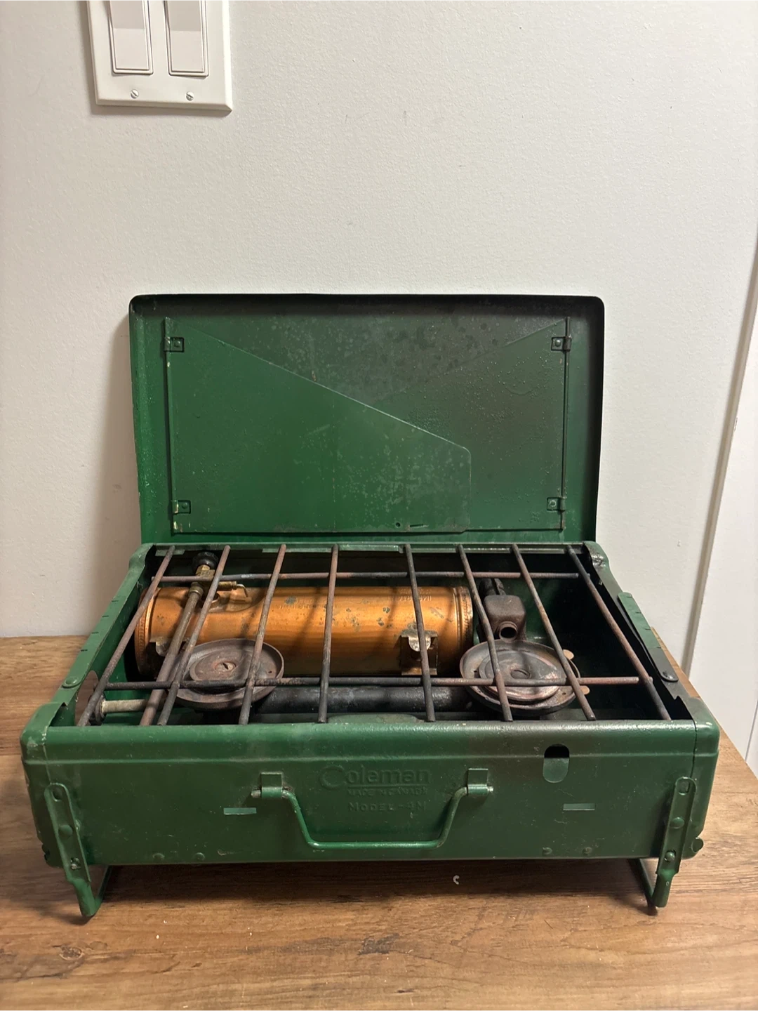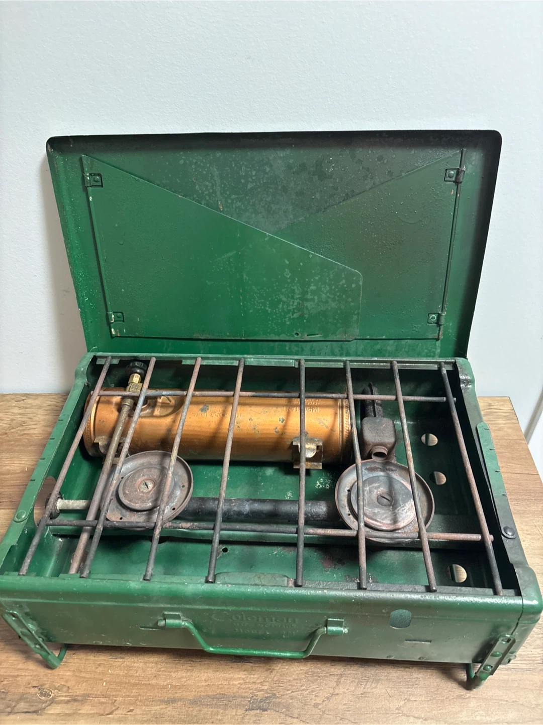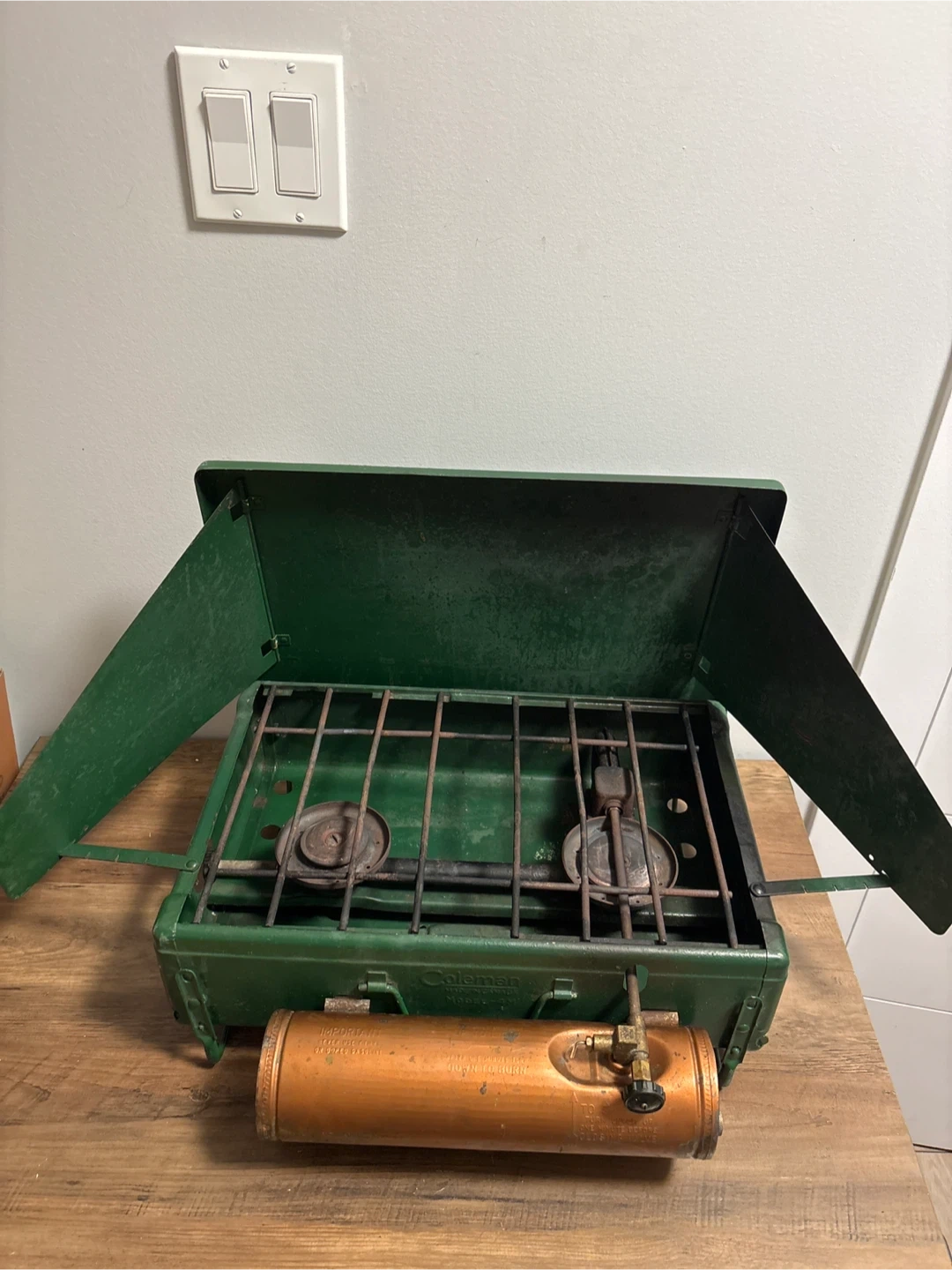 Selling a classic Coleman two-burner camp stove, model 425. It's green and ready for your next camping trip!