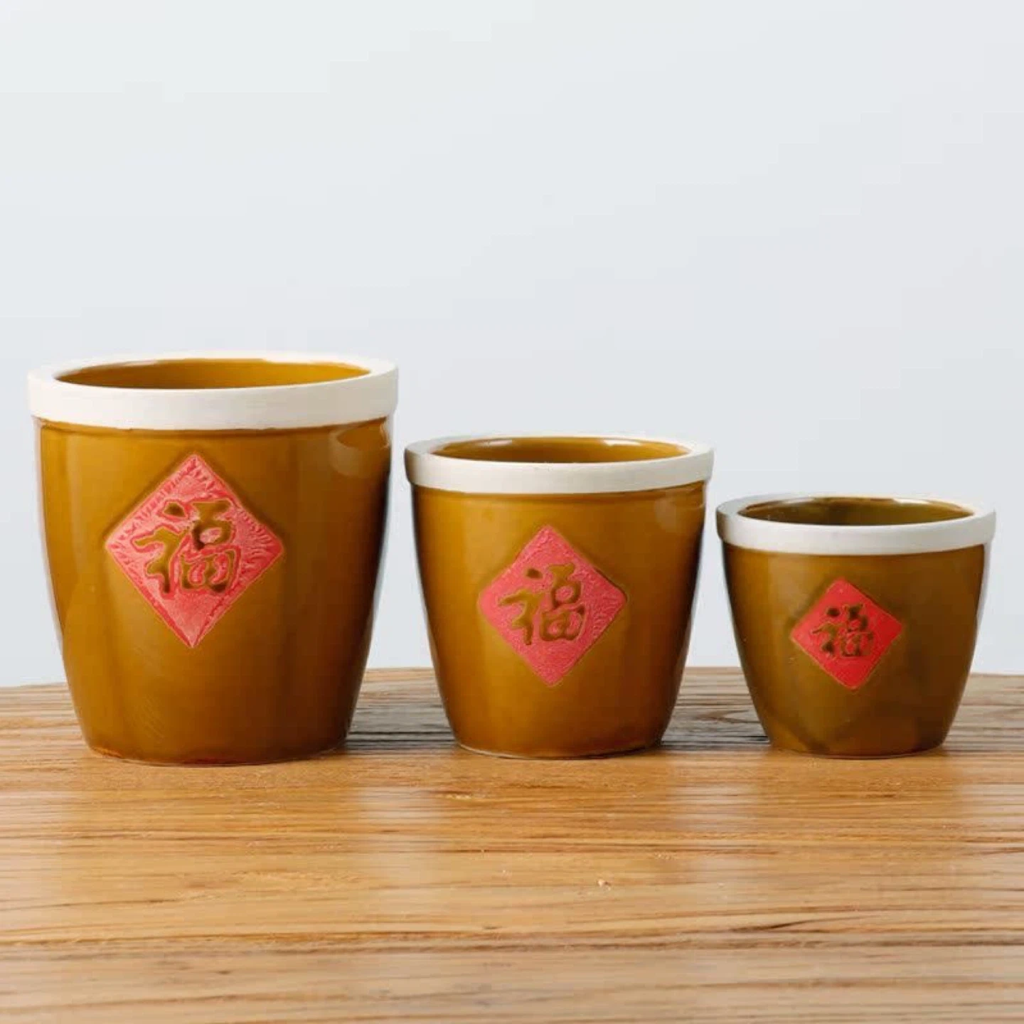 These are decorative ceramic pots, perfect for adding a touch of charm to your home or garden. They come in various colours and sizes, each featuring a unique design.