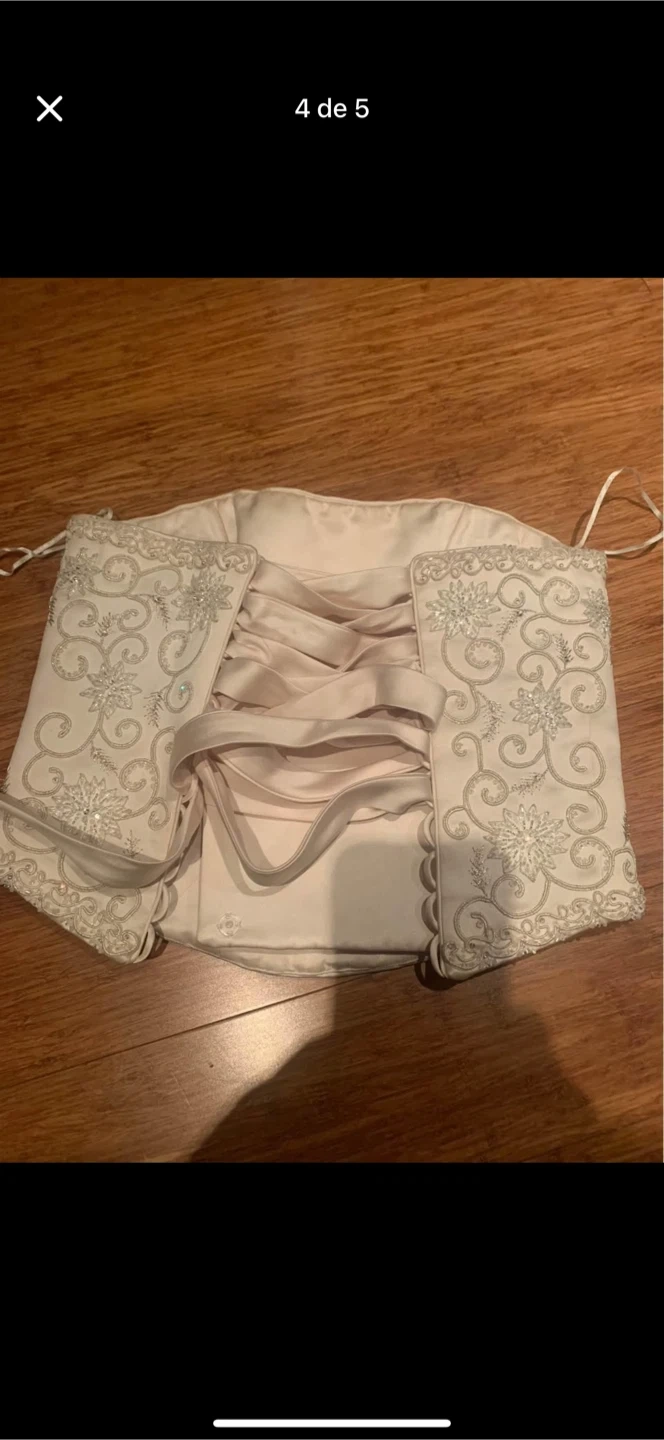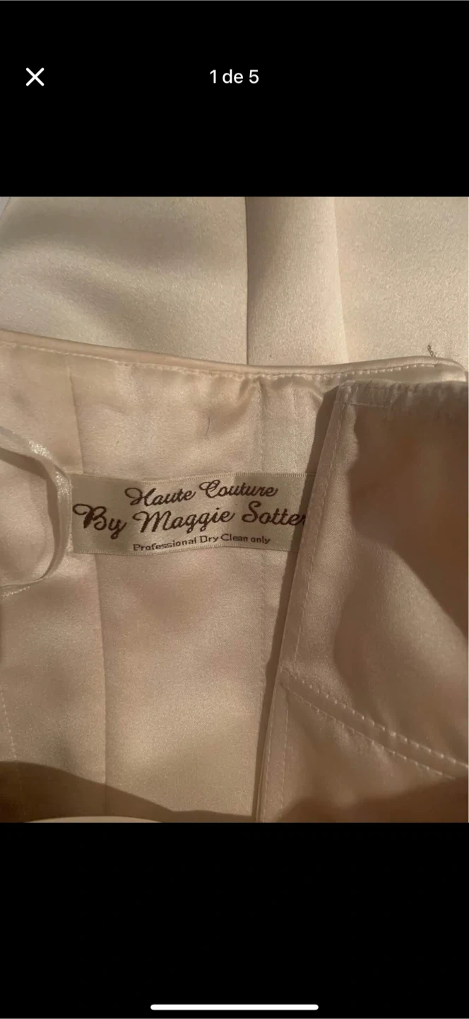 Beautiful Haute Couture wedding dress by Maggie Sottero. The dress features intricate detailing and a corset back. Perfect for your special day!