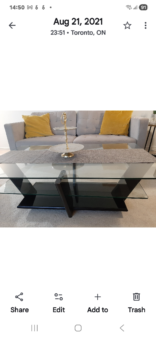 Selling a stylish glass coffee table with two extra shelves. One of them makes of glass and the base level makes of black wooden. It would look great in any living room. It’s ready for a new home