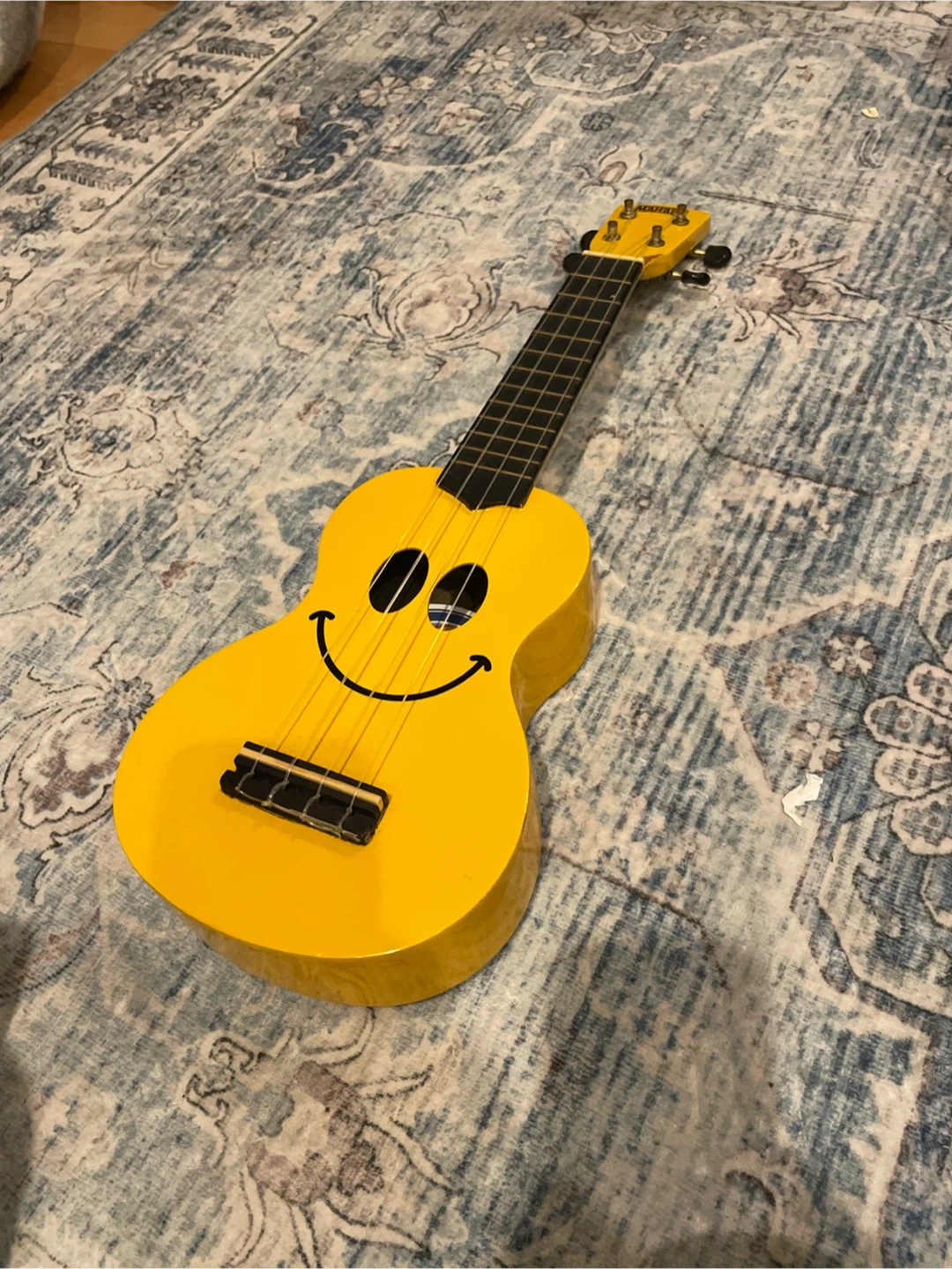 Selling a cute yellow Mahalo ukulele! It has a smiley face design and has a small chip at the top. Perfect for beginners or anyone who loves music
