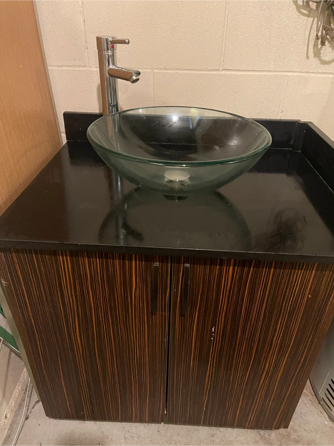 Bathroom Vanity, vessel sink and cabinet