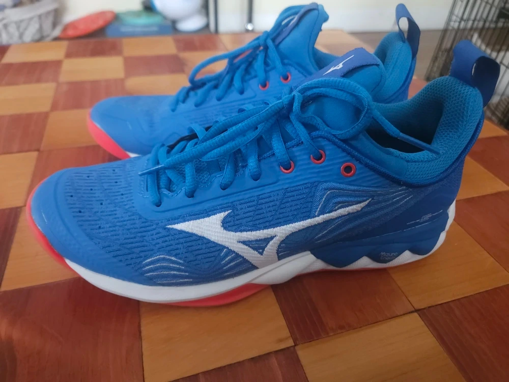 Selling a pair of Mizuno volleyball shoes in brand new–used condition — only worn indoors on the court, never outside.