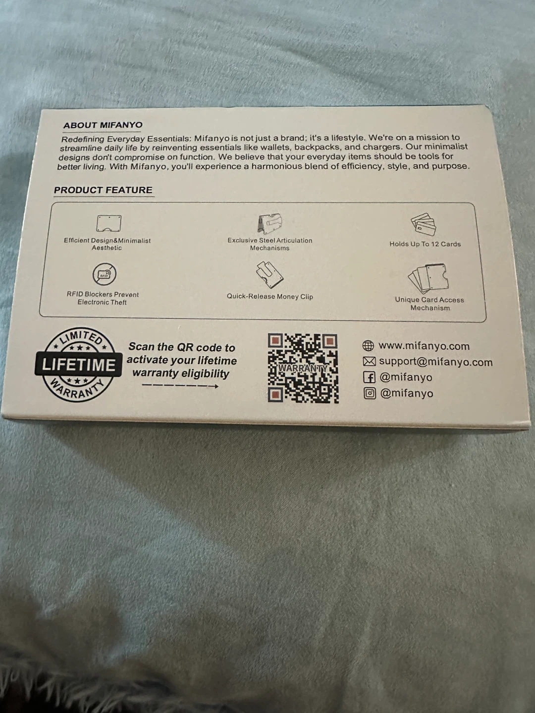 Selling a brand new Mifanyo slim minimalist wallet, still in its original box! It's designed to be sleek and simple, perfect for those who want to say goodbye to bulky wallets. It features: