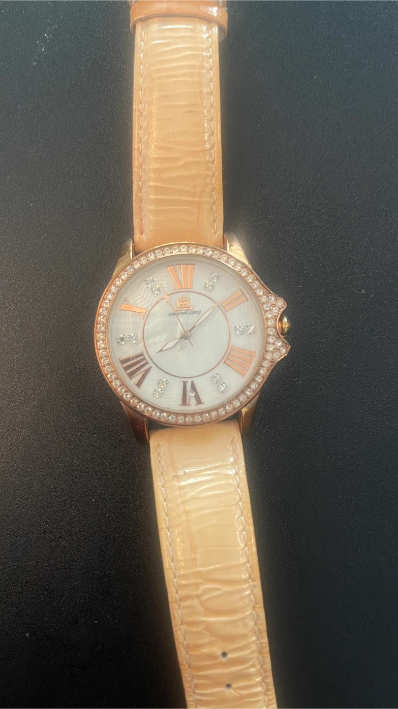 Selling a Jennifer Lopez women's watch. The band is genuine leather and the back is stainless steel. It's in great condition!