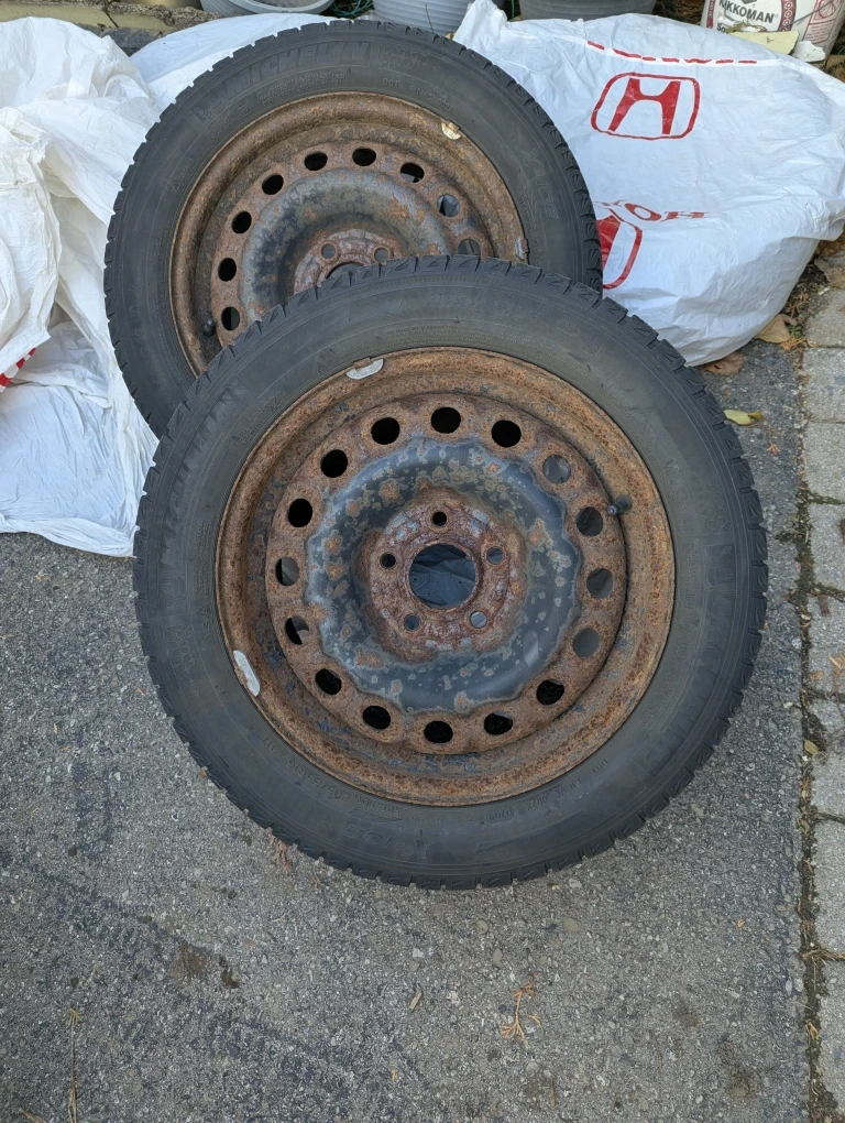 Selling 4 steel rims with 205/55R16 tires on. Time to do the winter tires change.