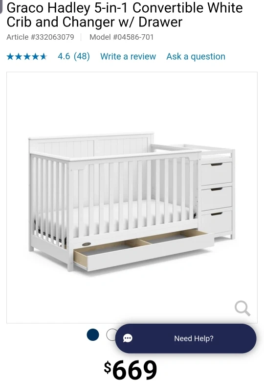 Selling a Graco Hadley 5-in-1 convertible crib and changer! It’s white and comes with a bonus water-resistant changing pad. It also has incredible nursery storage. Retails for $669