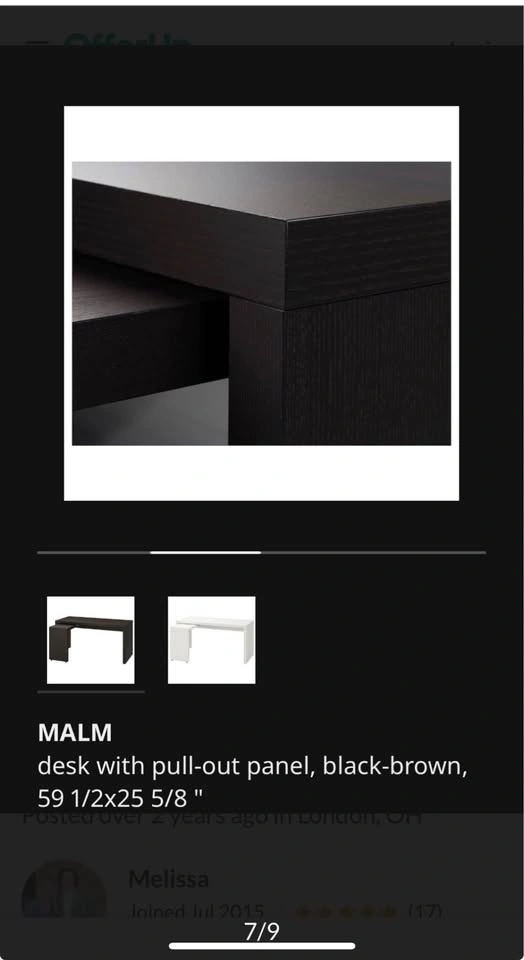 Buy & SellIKEA Malm Desk with pull-out black/brownIKEA Malm Desk with pull-out black/brown$90IKEA malm desk with adjustable pull-out. Black/brown. Dimentions in photoWHERE TO MEETCheck LocationView MapSELLERverifiedInaKildonan Drive650 reviews0 chats·0 favorites·7 views