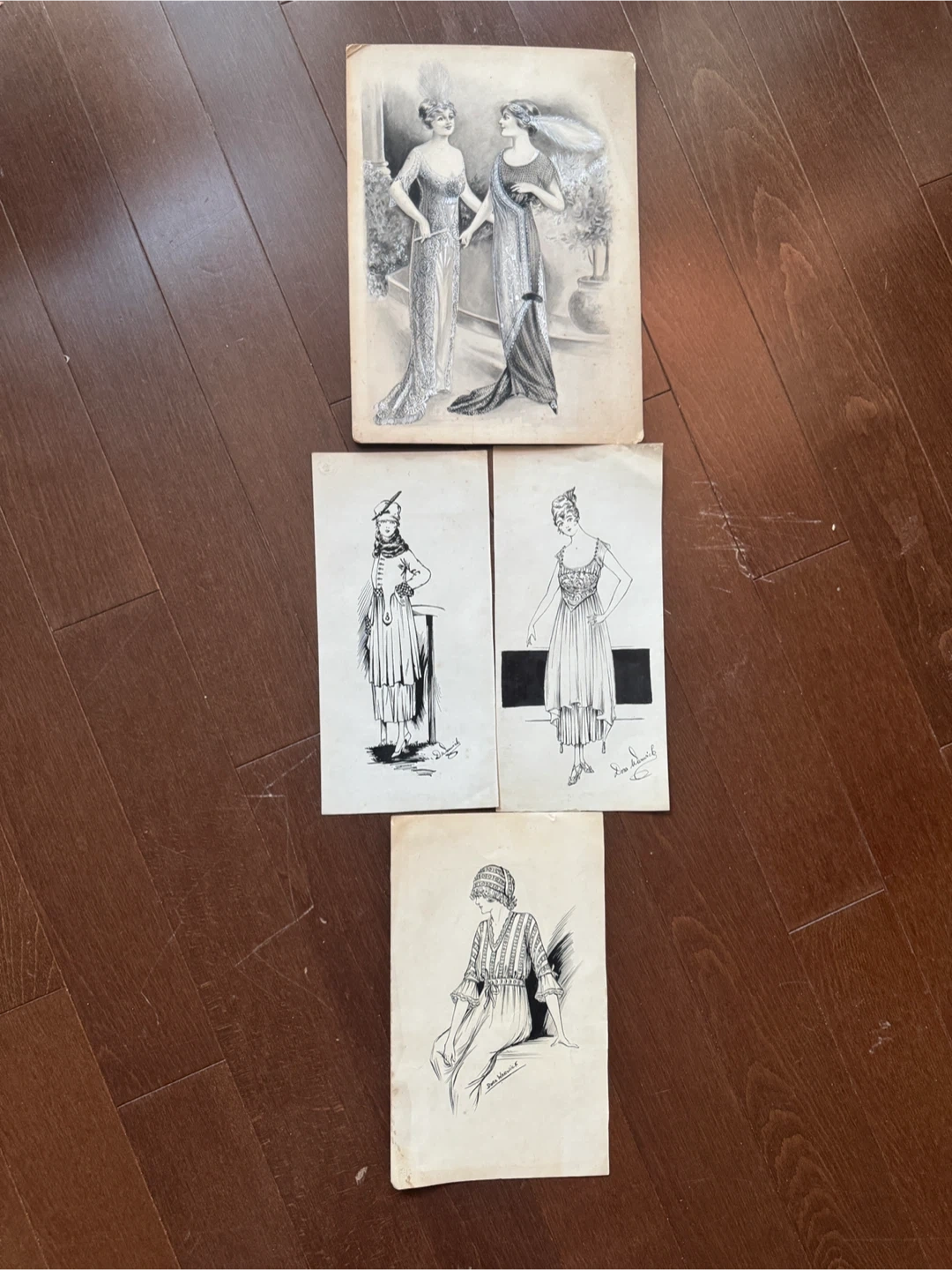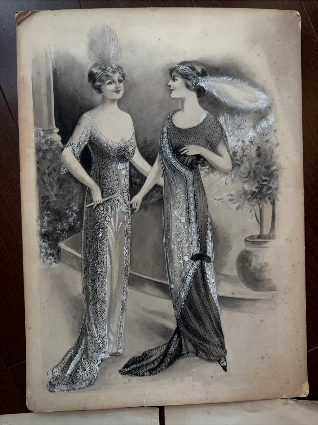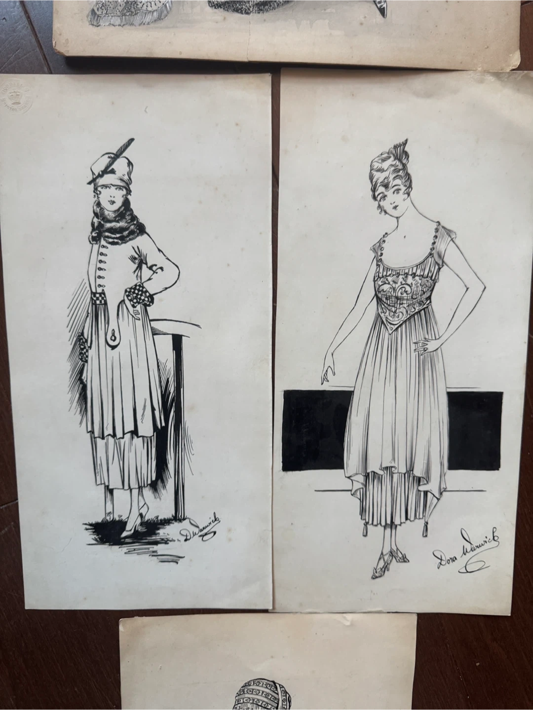 Selling a collection of vintage Roberson's Fashion Boards drawings. These are original black and white illustrations. All by an artist named Dora Warwick. Date of create approx 1920s. $35 for all!