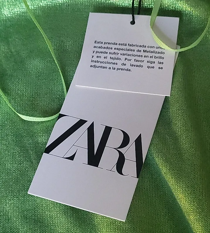 Ideal for Christmas. Selling a Zara knit top in a beautiful metallic green colour! It's a size medium and has a unique shimmer to it. The fabric has special metallic finishes, so make sure to follow the washing instructions on the label!