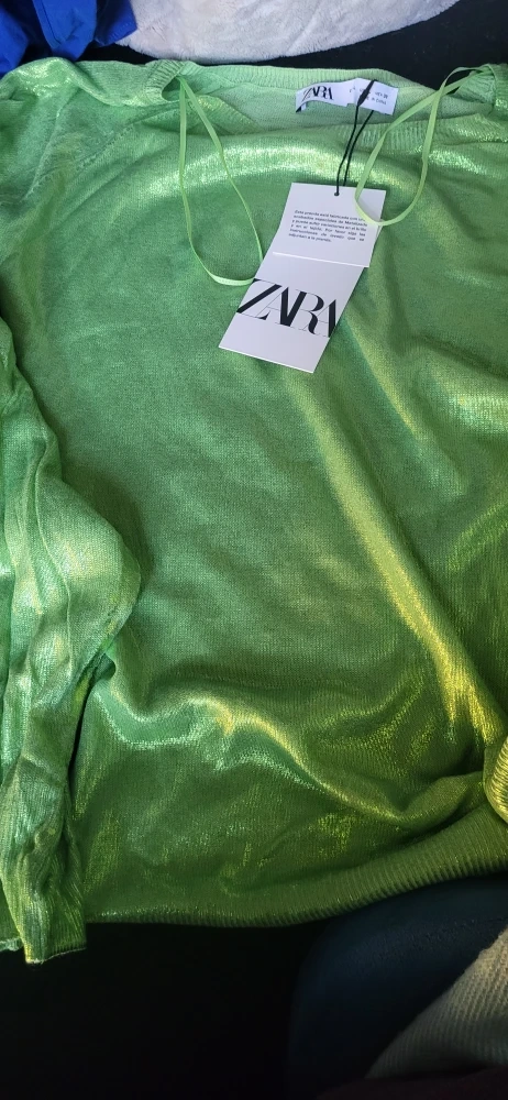 Ideal for Christmas. Selling a Zara knit top in a beautiful metallic green colour! It's a size medium and has a unique shimmer to it. The fabric has special metallic finishes, so make sure to follow the washing instructions on the label!