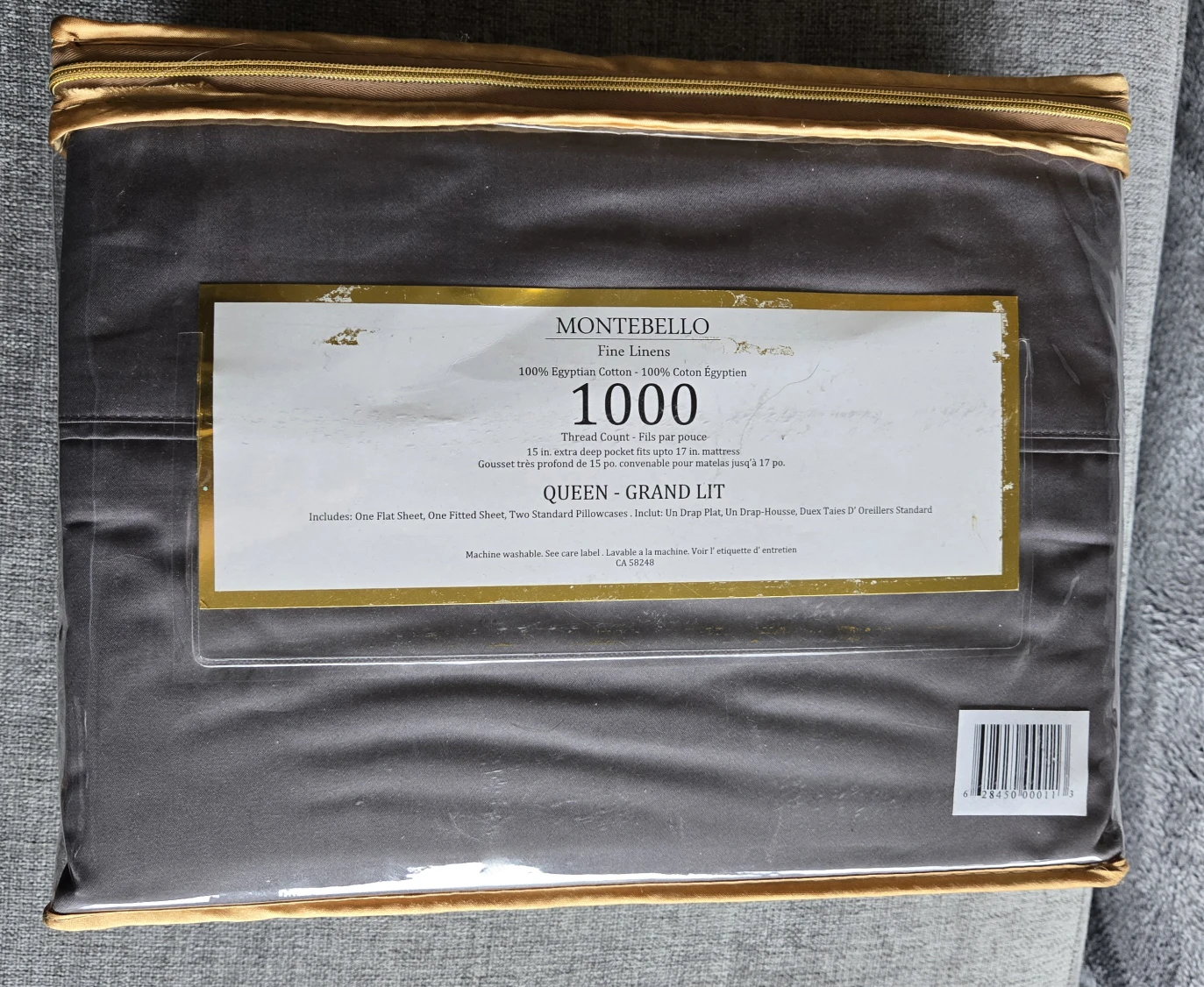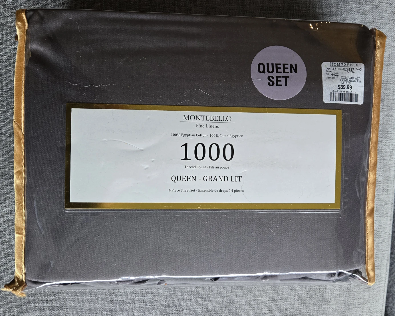 Brand new Montebello Queen size sheet set! This set is made of 100% Egyptian cotton with a luxurious 1000 thread count. Includes one flat sheet, one fitted sheet, and two standard pillowcases. Originally bought for $89.99 at Homesense, this set is still in its original packaging and has never been used.