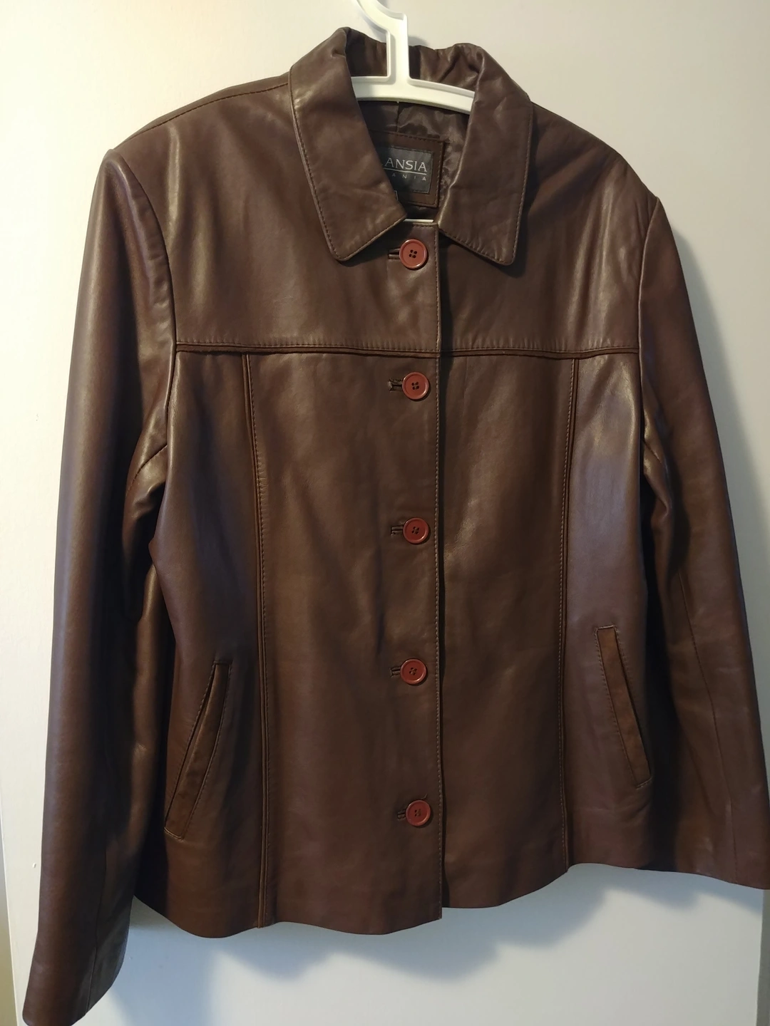 Like New Belansia Espania Leather Jacket, Size 16, Suede Edging, Brown Hamilton,L8K 2H3