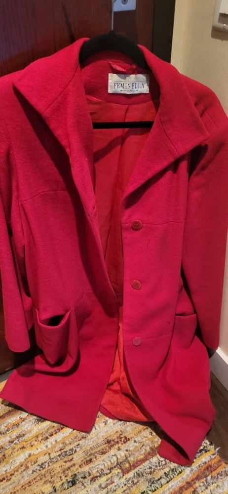 Selling a lovely red coat from Feminella, made in England! It's in great condition and ready for a new home.