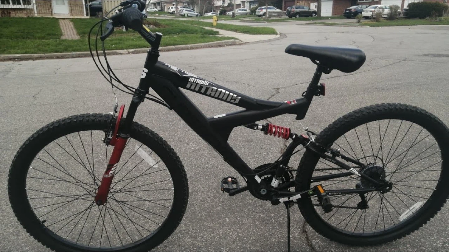 Selling a supercycle velo the montage Nitrous mountain bike in black and red. It's in good condition and ready to hit the trails!