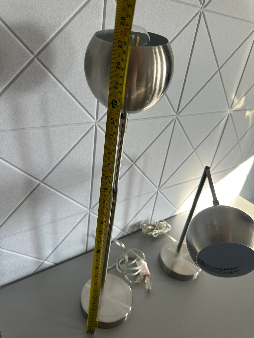 Selling a set of two modern desk lamps in silver. They're in great condition and would look amazing in any room. Both are desk lamps