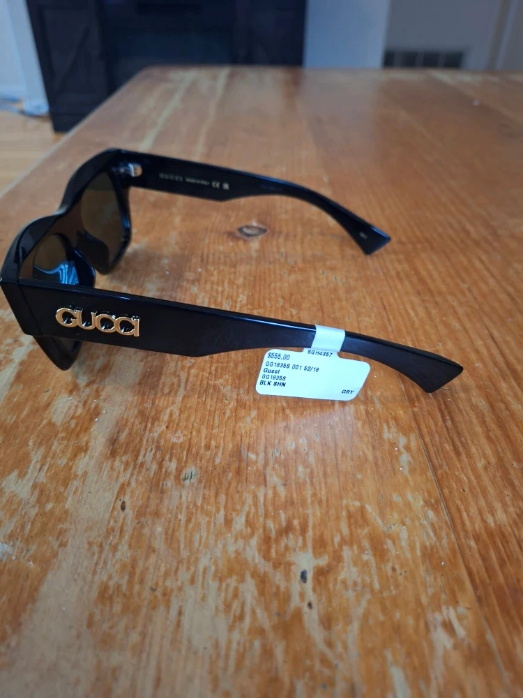 Selling a pair of Gucci sunglasses, model GG1438S 001. They are black. The original price was $555.00